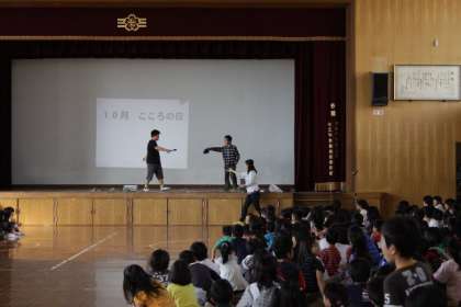 後期児童会本部役員が今週の中間休みは「おとなりの国、韓国・朝鮮の遊びをみんなでしよう。」と呼びかけていました。