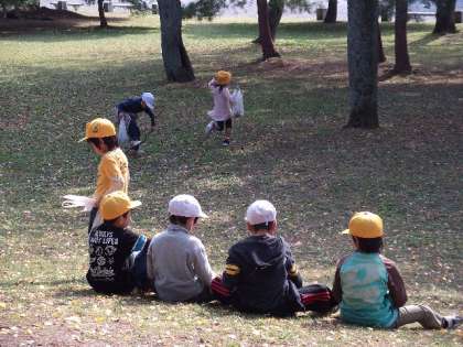 子どもたちは手に手にたくさんの松ぼっくりやドングリを持って「たくさんとった。」と喜んでいました。
