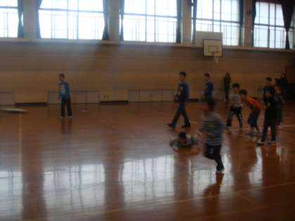 11日(日)にPTA主催のドッチビー大会がありました。児童,保護者,教職員の参加があり,大変盛り上がりました。児童チーム2チーム,大人チーム1チームで対戦しました。熱戦が繰り広げられ,最終的にどのチームも一勝一敗。決勝戦は子どもチームで行いました。結果Bチームが優勝しました。楽しい日曜日のひと時でした。