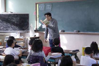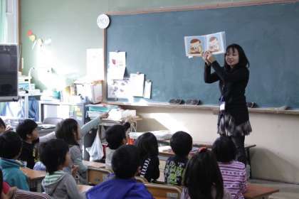 朝の読書の時間に担任以外の教職員が教室へ行って絵本の読み聞かせをしました。