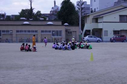 今日は「いかにバトンパスをおこなうのか。」を課題に子どもたちはチームで話し合っていました。