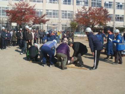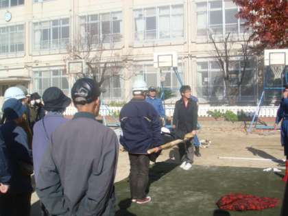 25日(日)に七条第三学区の防災訓練がありました。震度7の大地震が起きたという設定で行われ,地域の方が参加されました。避難訓練,情報連絡訓練,そして七条第三小学校で負傷者搬送訓練,バケツリレー訓練,防災器材救助訓練,放水訓練,給食給水訓練がありました。みなさん真剣なまなざしで訓練をされていました。