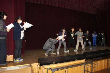 今日は教職員の劇の練習風景を一枚に選びました。さぁて何の劇でしょう。