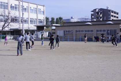 教室では算数の問題に取り組み、運動場ではドッジボールを楽しそうにしていました。
