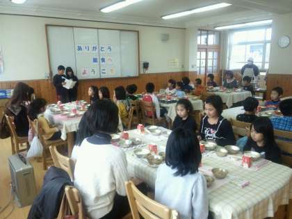 日頃からお世話になっている方々をお招きをして、ランチルームで一緒に給食を食べます。