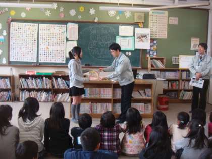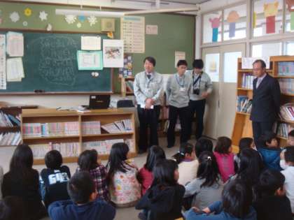 2月21日(木)にMMCテクニカルサービスの方が来てくださり,絵本を6冊贈呈してくださいました。これは,MMCテクニカルサービスの方が自分たちの給料を集めて買ってくださったそうです。図書委員会の子どもたちが代表でいただきました。大切に使いたいと思います。後日,児童朝会で全校に紹介したいと思います。