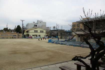 子どもたちは運動場でバスケットをしたり、キックベースをしたり楽しそうに遊んでいます。