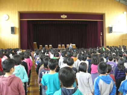 そのあと,春休み中に鍵を拾った本校の子どもが交番に届け,地域の方が大変感謝されていた話を校長先生が話されました。こころがポッと温かくなる朝会でした。