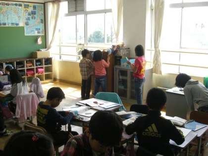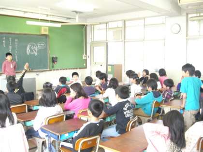 朝の会ではスピーチがあります。みんなが感想や質問をしている場面です。