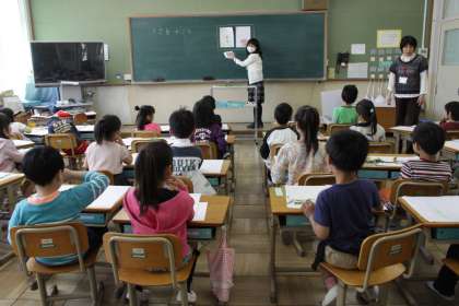 子どもたちは,前を向いて先生のおはなしをしっかりと聞いていました。