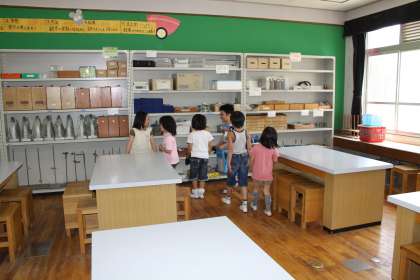「ここは理科室、4年生以上のお兄さん、お姉さんが理科を勉強するところです。」