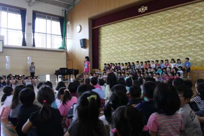 6年生の計画委員の子どもたちが司会進行、各学年からだしものがありました。