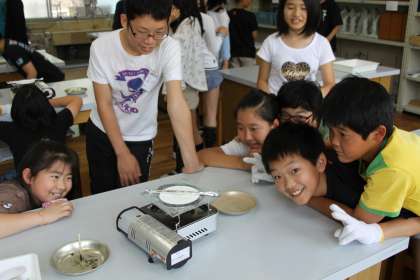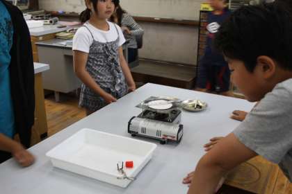 6年生の理科『もののもえかた』の実験の様子です。