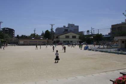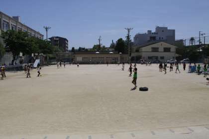 6年生がいなくてさみしいですが、抜けるような青空の下で子どもたちは鬼ごっこやボール遊びを楽しんでいました。