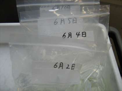 日付をつけてメダカがかえっていく様子を見ていると、子どもたちも楽しそうです。