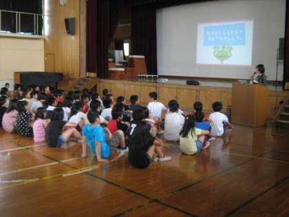 昨日、昼から6年生が体育館で携帯電話の教室がありました。