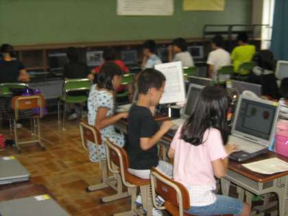 コンピュータークラブでは4年生から6年生の子どもたちが自分たちの興味にあわせて、インターネットで調べています。