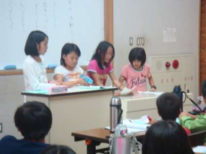 振り返りは,まず七条第三小学校でしました。いろいろな活動を振り返り,楽しかったこと,がんばったことなどをプリントに書き,発表しました。
