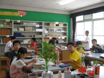 6年生は理科の授業でホウセンカをつかって水の通り道の学習をしました。