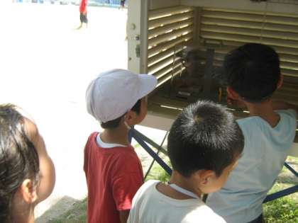 近くにいた子どもたちにも見せました。