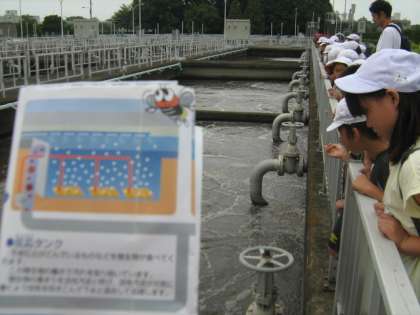 下水道⇒水環境保全センター⇒桂川や西高瀬川に放流する水の流れについてたくさんの事を学ぶことができました。