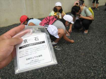 見学の最後にカスを燃やして固めて作った石をみんなでひろいました。
