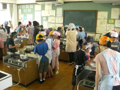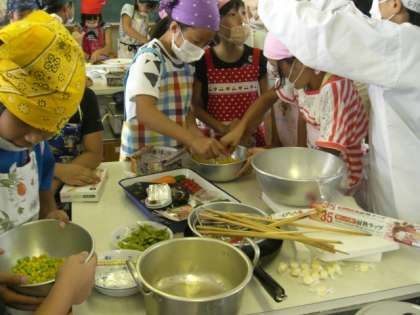 夏休み2日目ですが、子どもたちは家庭科室に来て、お弁当をつくりました。
