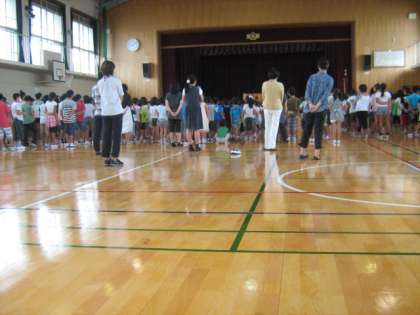 子どもたちも感嘆するほどきれいな体育館になりました。