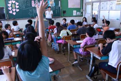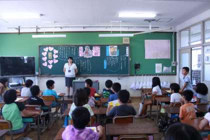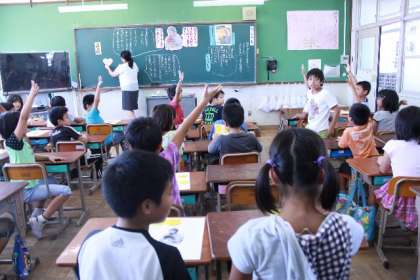 子どもたちは自分たちの考えを述べようと一生懸命に手を挙げていました。