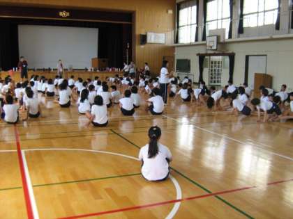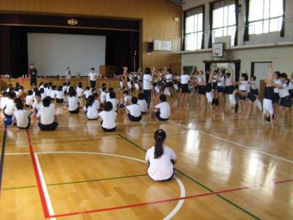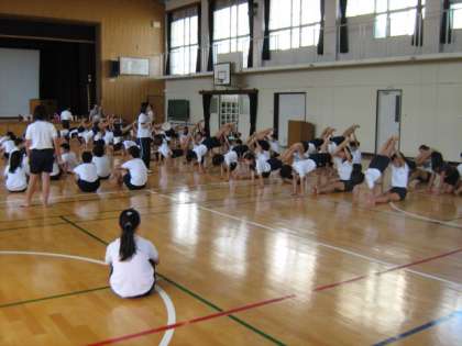 体育館で高学年が組体操の練習をしていました。