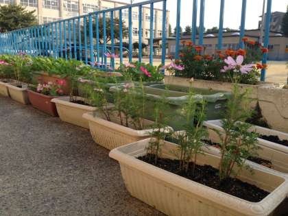 そんな中,PTAの方が学校をお花でいっぱいにしようと,秋桜やブルーサルビアなど秋の花を植えてくださいました。秋風に吹かれて気持ちよさそうです。とはいえ,今年は熱風ですが・・・。早く涼しくなってほしいです。