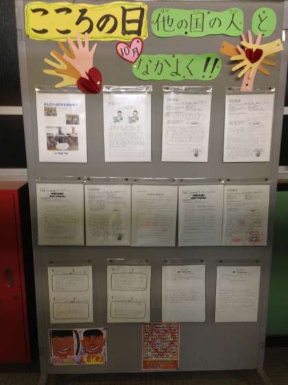 本校では,毎月14日を「こころの日」とし,テーマを決めて道徳を行っています。今月は「他の国の人と仲良くなろう」というテーマで行いました。各クラスの代表の子どもの感想を紹介しています。