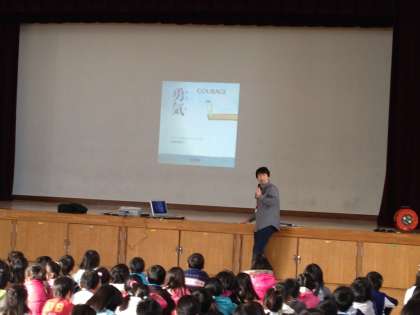 校長先生からのお話の後,絵本「勇気」の読み聞かせがあり,様々な勇気について考えました。