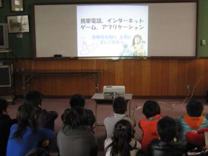 京都市教育委員会に出向されている警察官の方が来て下さって、ケータイの使い方について教えていただきました。