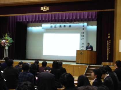そのあと,全体会で学校長の挨拶,研究の概要説明を行ったあと,指導講評がありました。参会された方は熱心に話を聞いておられました。そのあと,大阪教育大学 名誉教授 藤永 芳純先生の講演がありました。大変楽しく,そして勉強になるお話をたくさんしていただきました。