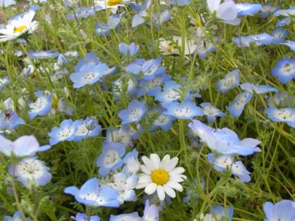 (答 1枚目かりん 2枚目つつじ 3枚目ネモフィラとノースポール)
