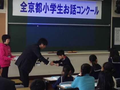2月11日(火)に京都女子大学で小学生お話コンクールがありました。本校3年生が2名参加しました。緊張しながらも堂々としっかり話すことができました。結果,個人努力賞を一人の児童がもらいました。