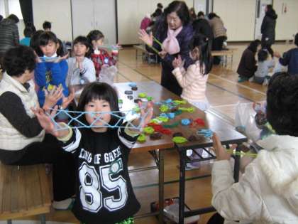 紙飛行機を飛ばしたり、あやとりをしたり、おりがみをしたりしてみんな楽しそうに遊んでいました。