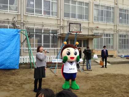 PTAと七条第三児童館の共催の「もちつき大会」が3月2日(日)に七条第三小学校運動場で行われました。たくさんの子どもたち,保護者,地域の方が来られ,大盛況でした。スペシャルゲストとして七条第三学区のゆるキャラ「なみっとくん」が登場し,もちつき大会を盛り上げてくれました。