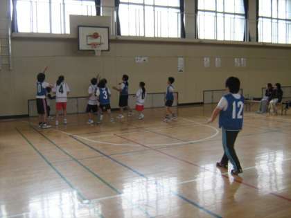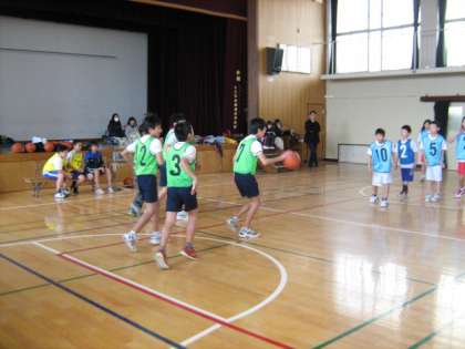 開晴小学校と西院小学校の4年生から6年生のバスケットボール部の子どもたちと楽しくバスケットボールをしました。