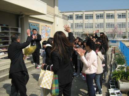 花道で子どもたちは別れる教職員に声をかけながら、しばし思い出に浸っていました。