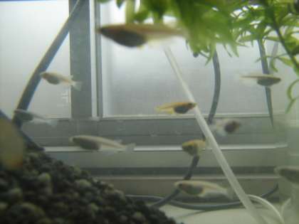 5年生の学習でメダカの誕生を学習するための生物ですが、水槽の水も暖かくなってきたようで、卵をつけたメスが2匹いました。