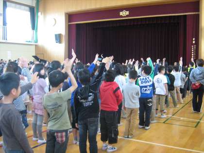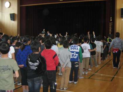 校長先生の話に子どもたちは素直に手を挙げていました。