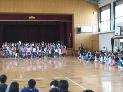 代表委員が楽しくゲームをして盛り上げ、全校でドレミの歌を歌います。