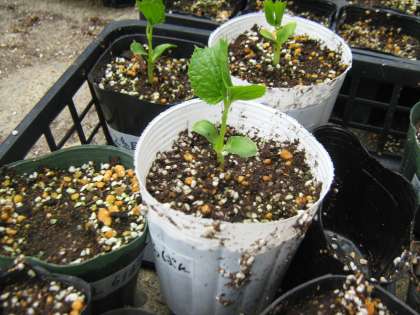 校門を入って左手のポットの中には4月にまいた植物が芽吹いています。