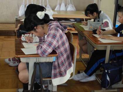 出来上がったものを休み時間に下の学年の子に説明しながらわたします。