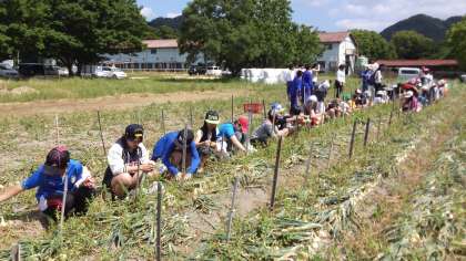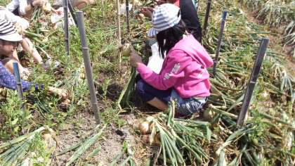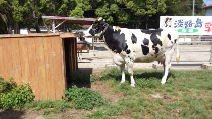 淡路島牧場では乳牛のお出迎えの中で玉ねぎ掘りに挑戦しました。