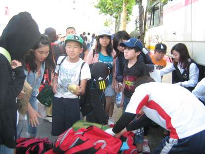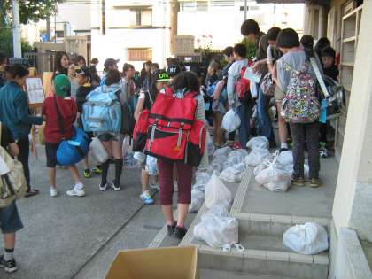 17時30分ごろに6年生が修学旅行から学校に戻ってきました。