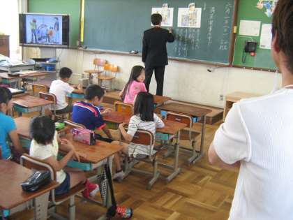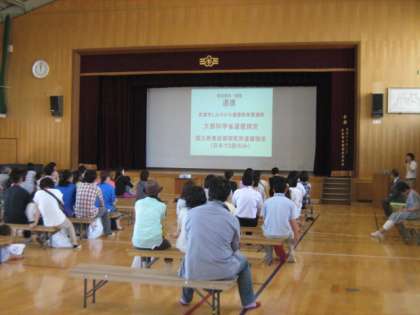 参観授業の後は体育館にて教育説明会があり,七条第三小学校の教職員が