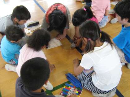 どのグループも輪になって楽しく活動をしています。